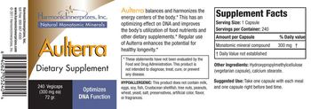 Dairy Free Adult (18 - 50 Years) NP Dietary Supplement 240 Vegicaps (300 mg ea) Aulterra balances and harmonizes the energy centers of the body.* This has an optimizing effect on DNA and improves the body's utilization of food nutrients and other dietary supplements.* Regular use of Aulterra enhances the potential for healthy longevity.* Natural Monatomic Minerals Optimizes DNA Function Suggested Use: Take one capsule with each meal and one capsule right before bed time.